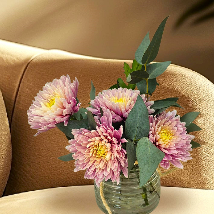 Jarrón de vidrio cristalino con Crisantemos importados de Ecuador